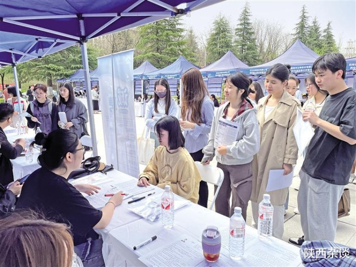 4月8日,2025年陕西省女大学生春季专场现场招聘活动吸引众多求职者。